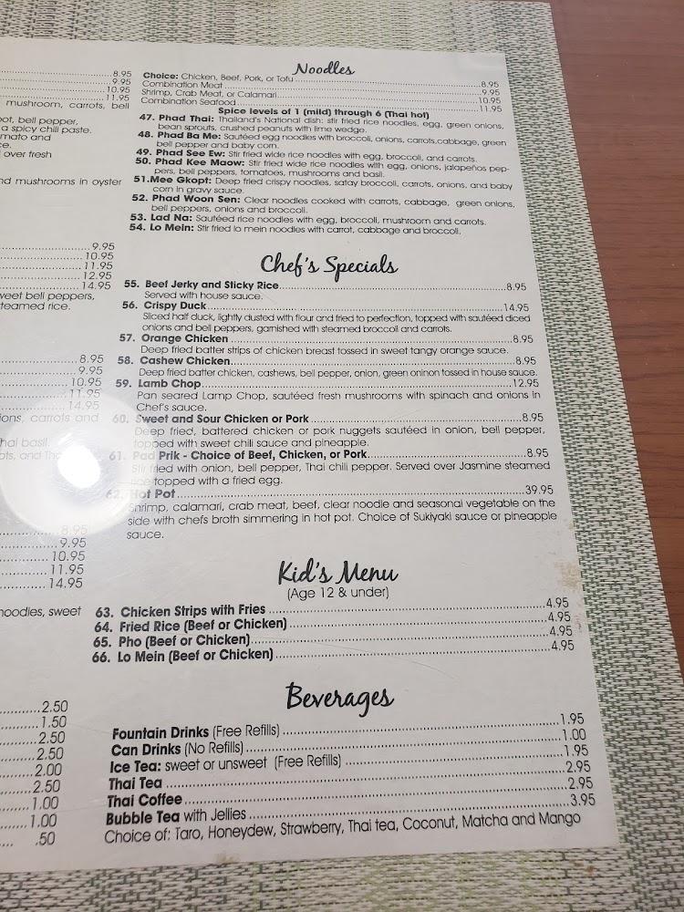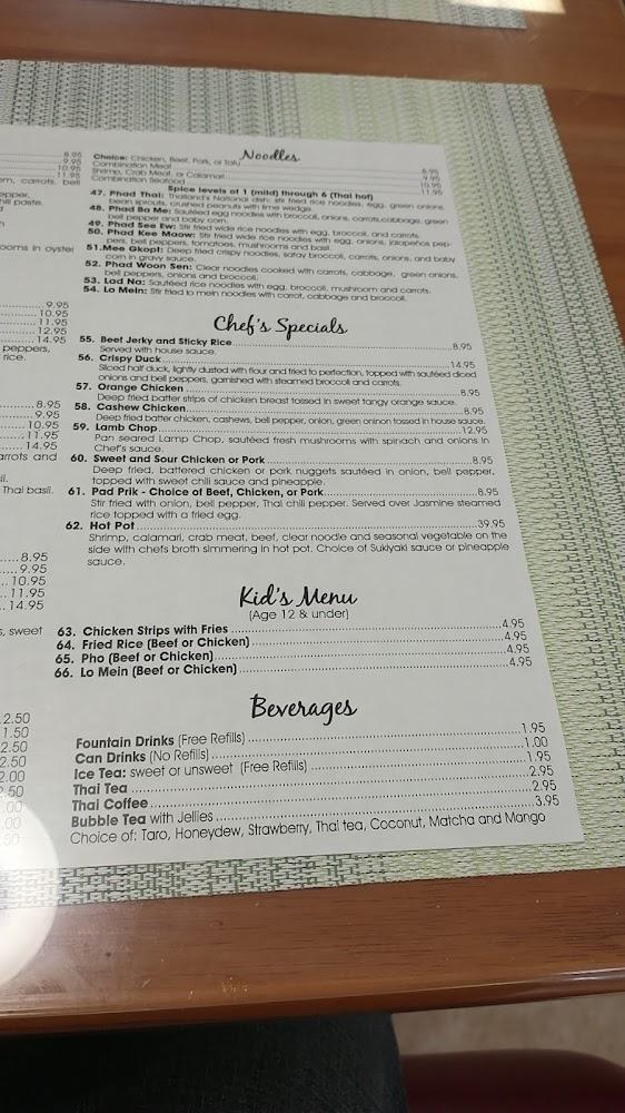 Thai Curry's menu is a diverse collection of delights. Visitors can savor everything from fresh spring rolls to comforting noodle dishes. The menu includes signature items like Pad Kee Maow and Phad Ba Me, both celebrated for their rich flavors. There are numerous curry options, with favorites like Panang and Green Curry. Vegetarian choices abound, ensuring inclusivity for all diners. The fried rice and soups are also popular, providing something for every palate. Finally, the kids’ menu offers family-friendly choices that keep younger guests satisfied. Overall, it’s an exciting culinary journey through Thai cuisine, ready to explore.